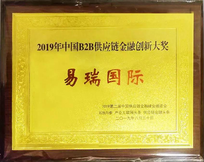 易瑞国际荣膺“2019中国B2B供应链金融创新奖”!