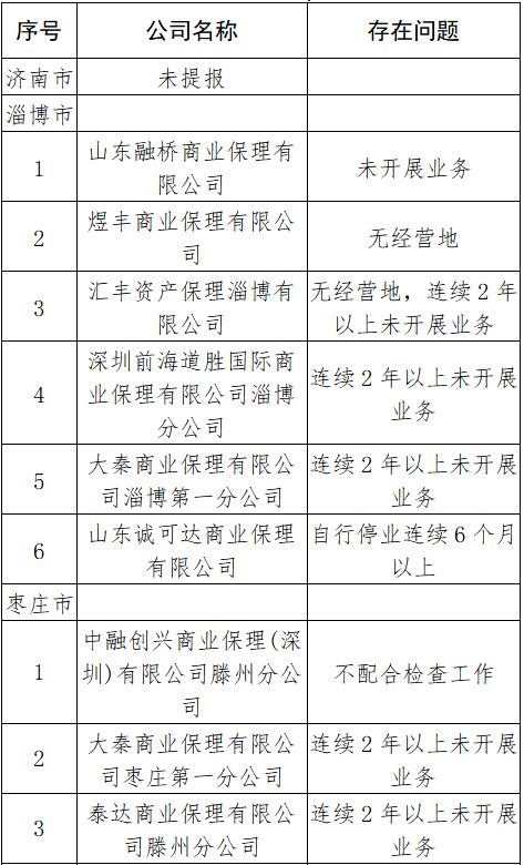 根据中国银保监会《关于商请组织开展商业保理行业专项清理排查的函》(银保监函〔 2019 〕 31 号)要求,我局下发了《关于印发山东省商业保理行业专项清理排查实施方案的通知》(鲁金监字〔 2019 〕 89 号)和《关于进一步做好非正常经营商业保理企业清理处置工作的通知》(〔 2019 〕 640 号),要求各市由地方金融监管部门牵头,对辖区内商业保理公司进行全面摸底排查,对非正常经营企业进行清理处置。现将有关情况通报如下: