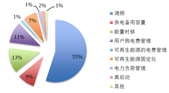 此外,储能应用较为活跃的领域还有供电备用容量,占比9%。备用容量是指在满足预计负荷需求以外,针对突发情况为保障电能质量和系统安全稳定运行而预留的有功功率储备,一般备用容量是系统正常电力供应容量的15%~20%,且最小值应等于系统中单机装机容量最大的机组容量。由于备用容量针对的是突发情况,一般年运行频率较低,如果是采用电池单独做备用容量服务,经济性无法得到保障,因此需要将其与现有备用容量的成本进行比较来确定实际的替代效应。