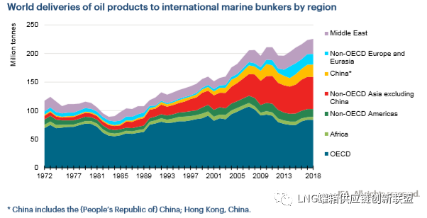 与2017年相比,2018年化工和石化行业的石油产品消费量大幅下降(-9.5%)。这是由于该行业的石油产品能耗下降, 而非原料使用量下降。2018年, 由于非经合组织成员国需求的强劲增长(+6.4%), 全球石油原料使用量增长2.8%。