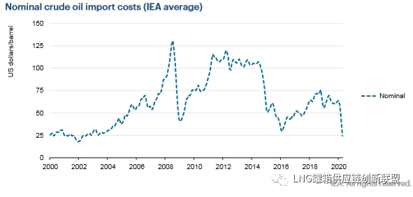 由于新冠肺炎(COVID-19)震撼了全球石油市场, 国际能源机构成员国2020年第一季度原油平均进口成本骤降至近年来未见的水平。