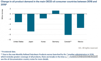 2018-2019年经合组织主要石油消费国石油产品需求变化