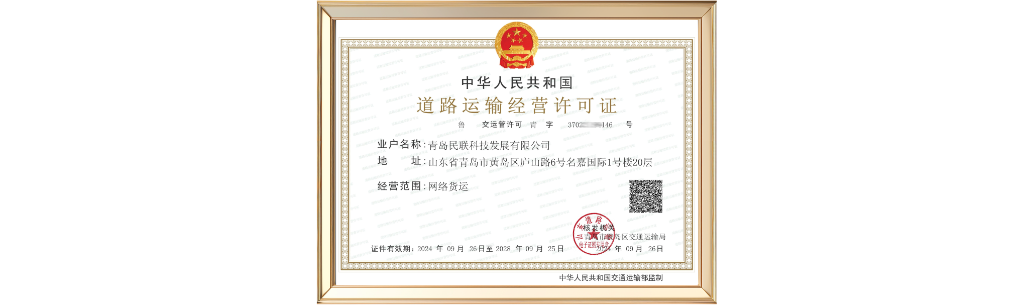 2024年9月26日,民联集团旗下子公司—民联科技公司,成功获得了网络货运经营许可牌照。该牌照不仅标志着民联集团在网络货运领域的经营探索取得了突破性进展,也意味着其网络货运运营能力和资质得到了官方认可。