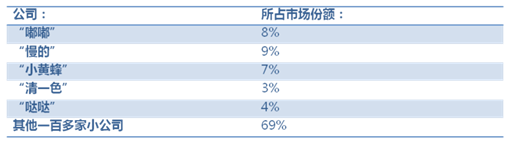 可以看出,大批在之前有一定市场地位的公司出局,而 “ 嘟嘟 ” 和 “ 慢的 ” 两家公司将占领市场 90% 的份额。