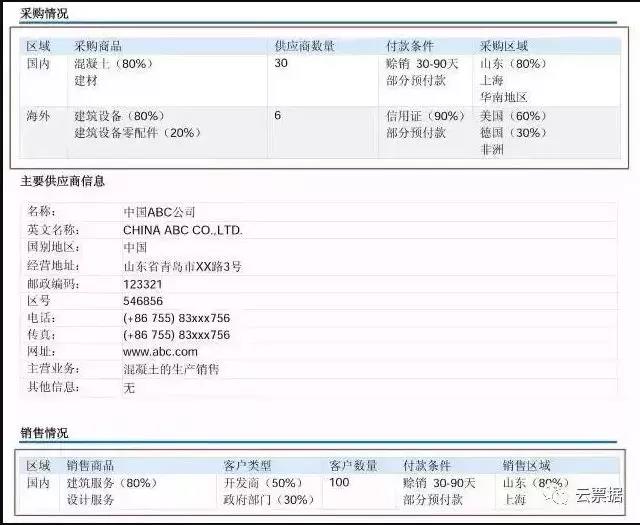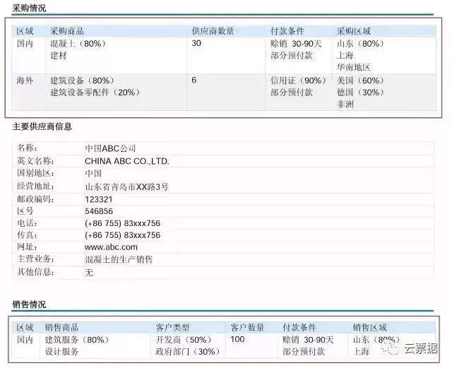 采购及销售信息体现的是目标公司的上下游信息,包括企业采购及销售情况、供应商及客户情况。