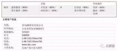 采购和销售信息这两大模块体现的是目标公司的上下游信息,涵盖了目标公司的付款方式、上下游的企业类型、数量、区域等内容。通过信用视界的报告分析师跟上下游企业进行沟通,还可以从侧面了解目标企业的付款情况、交货情况、产品质量等,进而获取目标企业在部分供应商中的信用情况。
