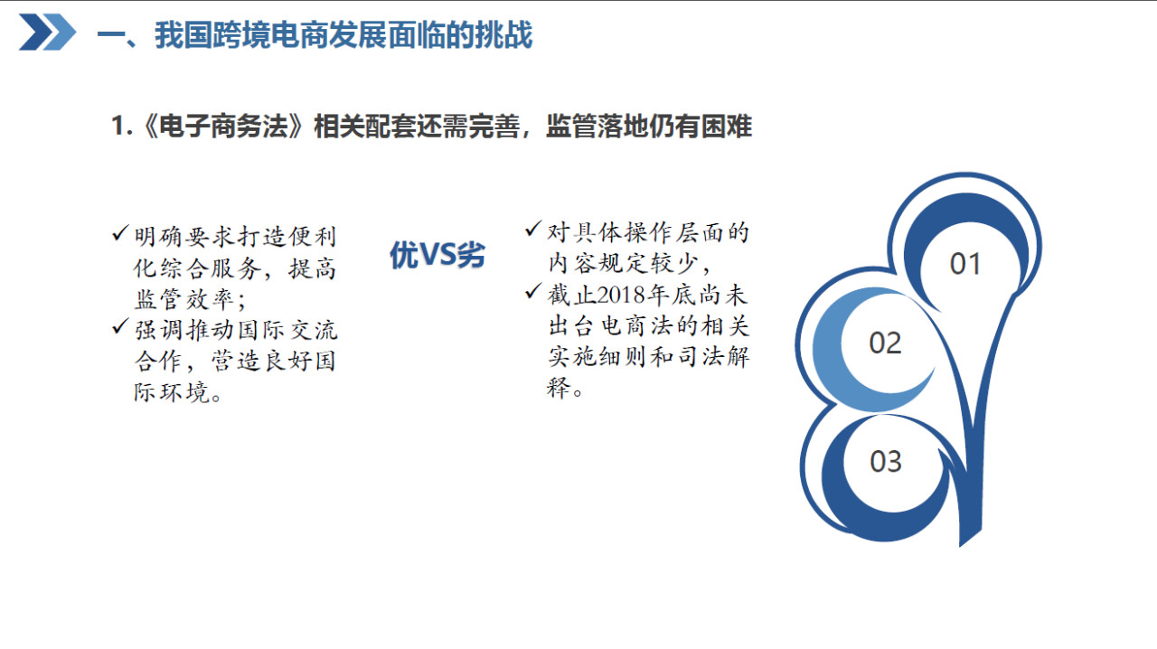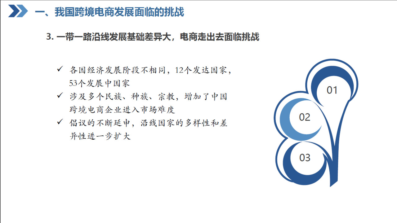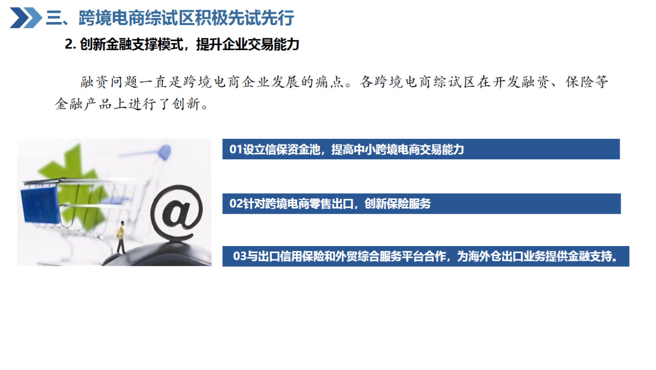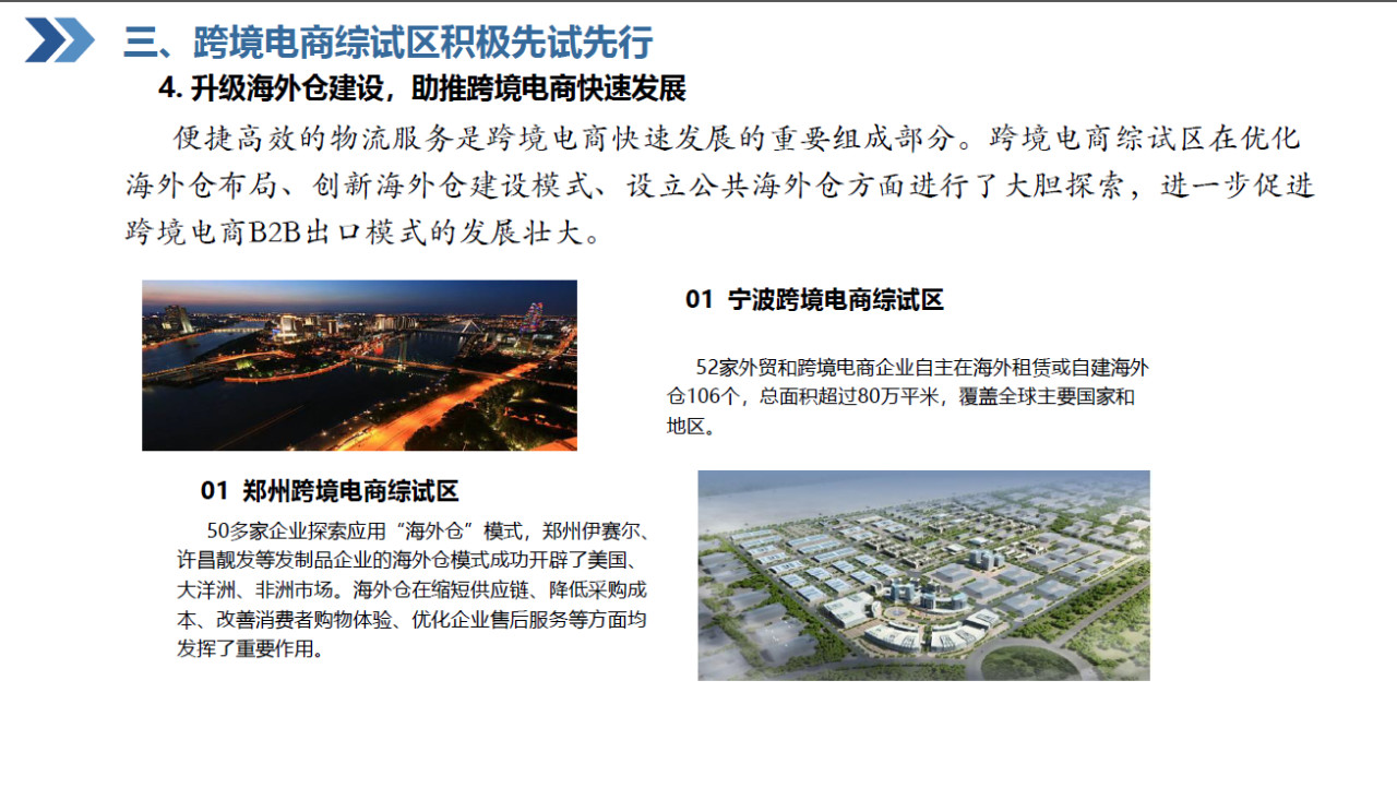 1.跨境电子商务交易总额不断增长,结构优化升级;2. 跨境电子商务国内区域发展逐步均衡,中西部地区成为新增长点;3. 跨境电子商务国际范围不断扩大,丝路电商成为新亮点。
