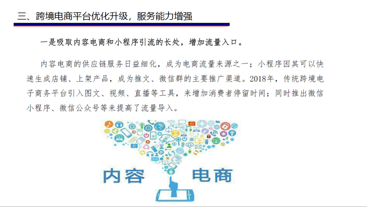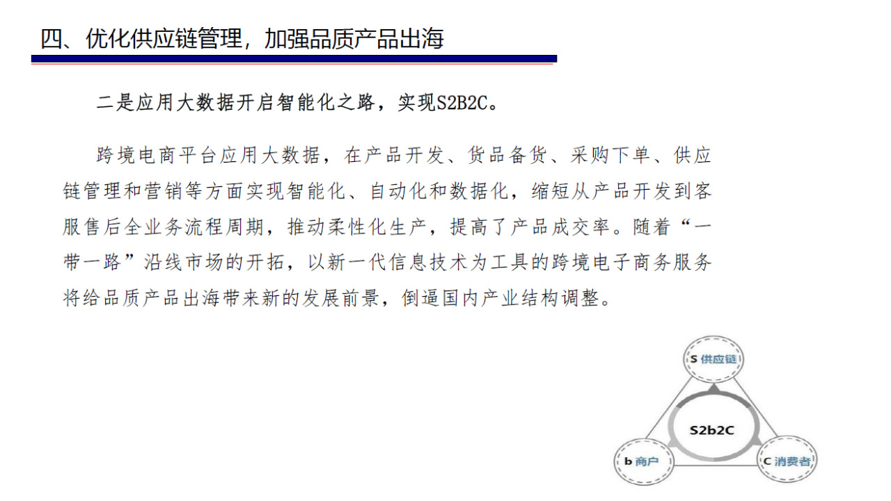 1.市场需求精耕细分,助力消费结构升级;2.跨境电商平台优化升级,服务能力增强;3.优化供应链管理,加速品质产品出海。