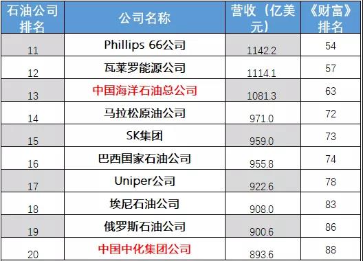 非常令人欣喜的是,中国海油、中国中化两家公司,排名较同期分别 提升24位、10位 ,强势入围《财富》百强企业。