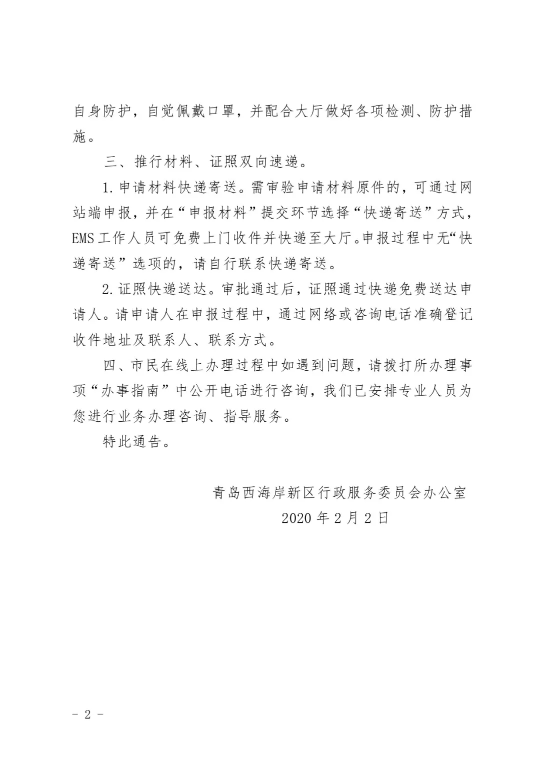关于全面推行“网上办、不见面”政务服务模式的通告