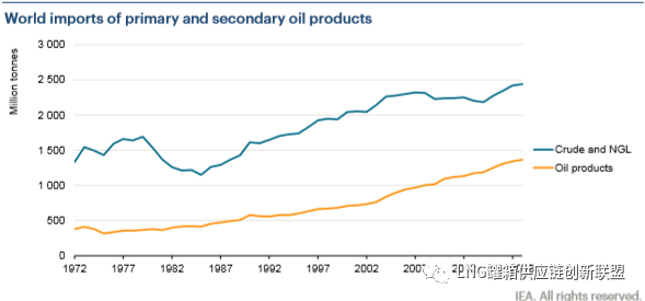 全球一次石油产品和二次石油产品进口量