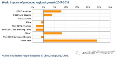 2017-2018年全球分区域进口增长率